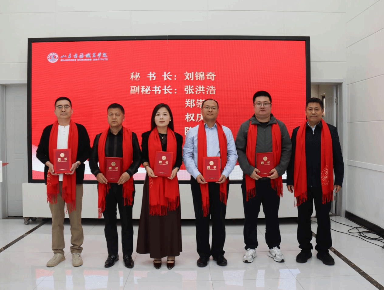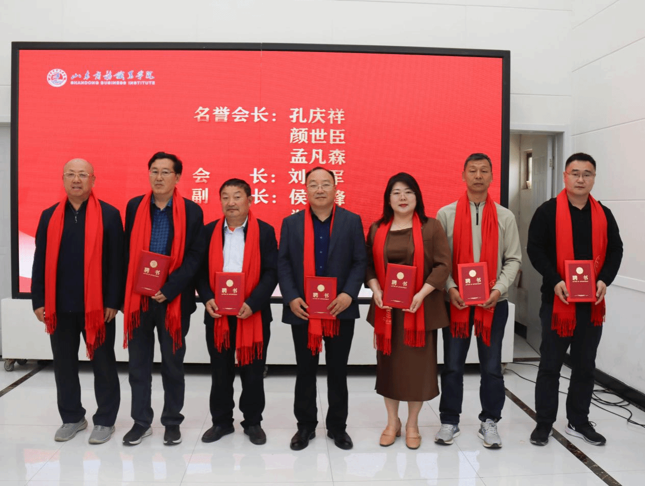 宫国学为济宁校友会秘书长、副秘书长颁发聘书。