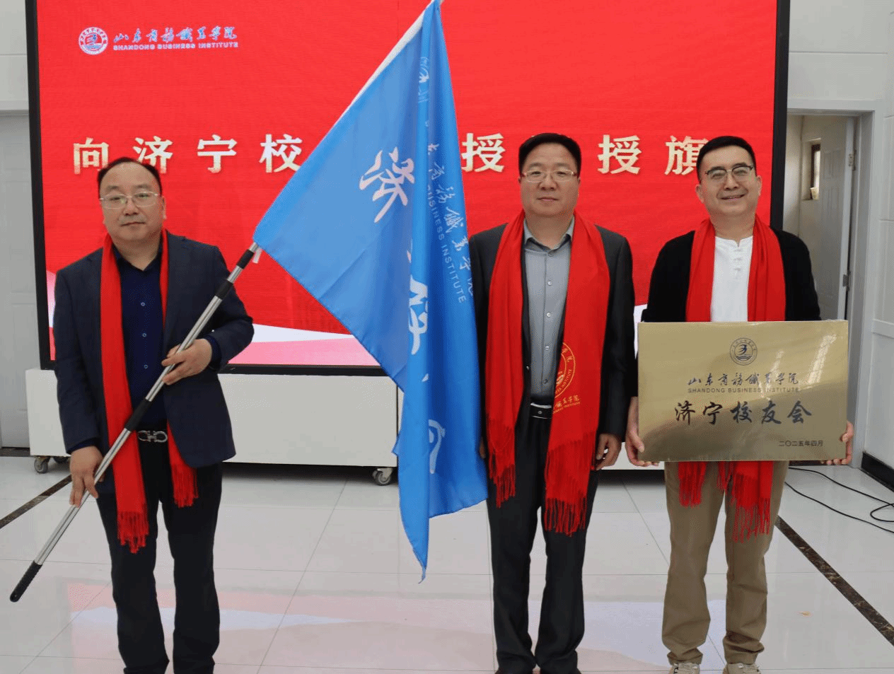 张越为济宁校友会授牌、授旗。