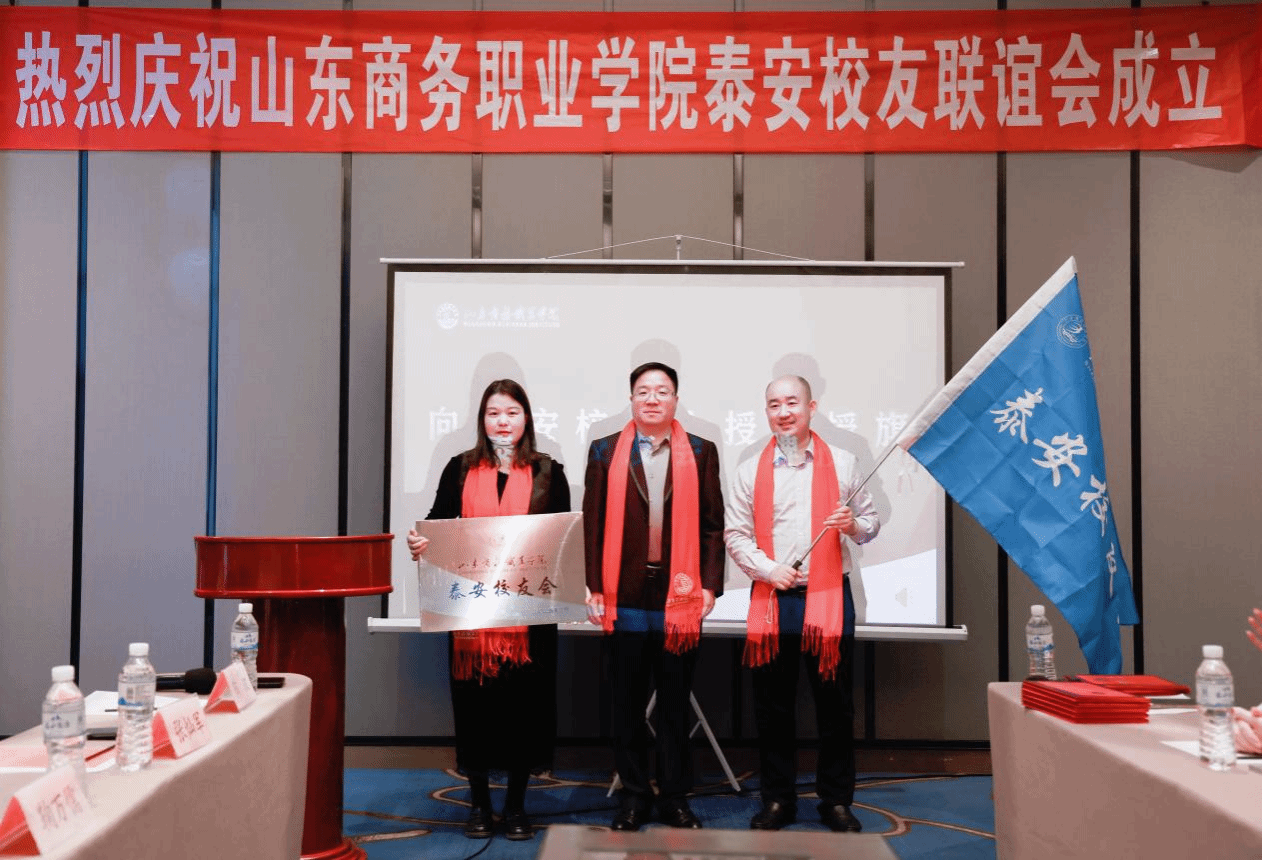 张越表示,校友是学校的一道亮丽名片,校友形象是学校精神风貌的缩影,是连接学校与社会的桥梁。校友们的成就和风采,不仅展示了个人奋斗的成果,更是对母校教育质量的最好证明,昨日校友以学校为荣,今日学校以校友为傲。他希望泰安校友会能成为校友们交流情感、分享经验、共谋发展的重要平台,同时也成为母校与校友间联系的桥梁和纽带,促进双方共同发展。张越为泰安校友会授牌、授旗。