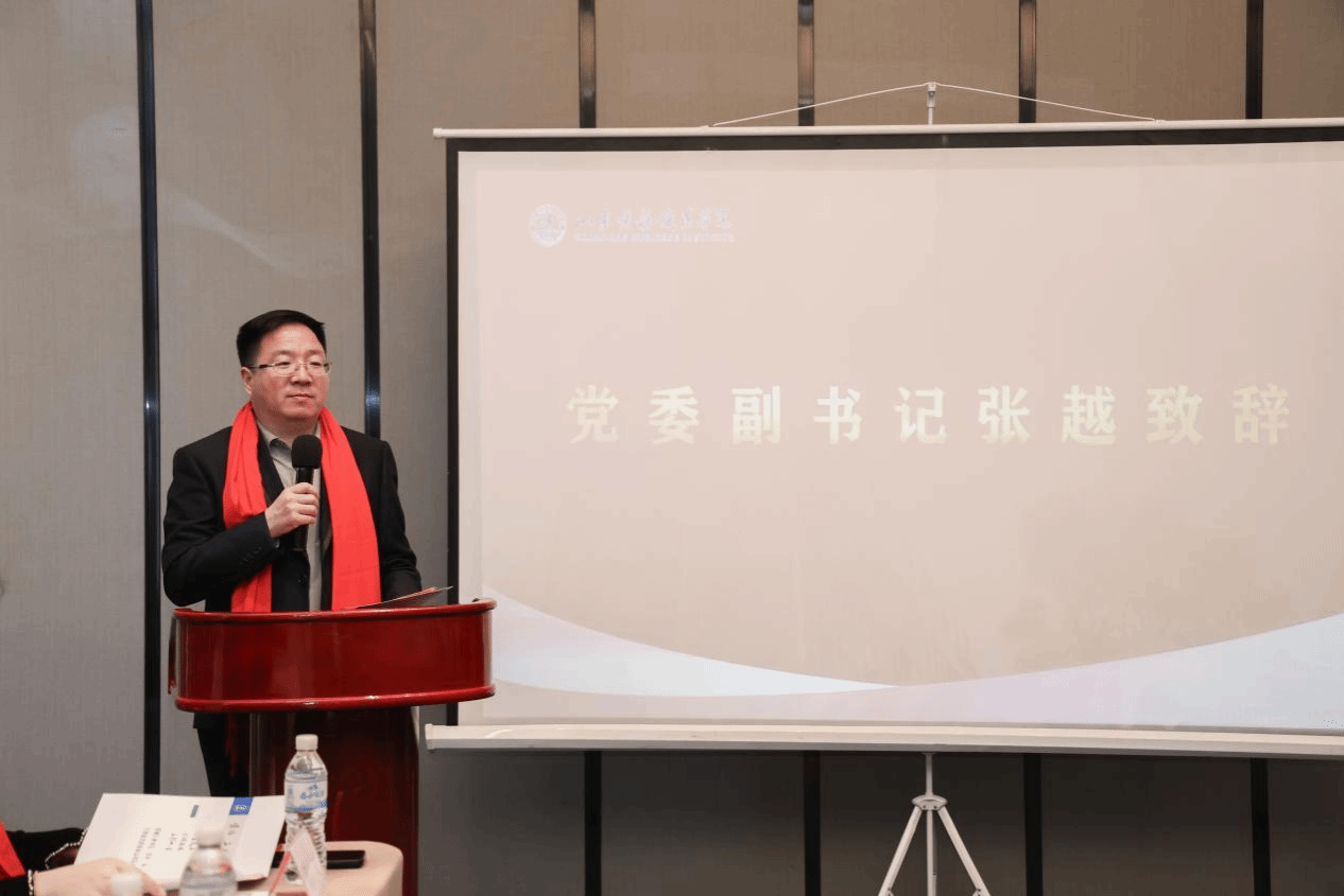上午10时,校友会成立仪式正式开始。张越向泰安校友会的成立表示祝贺,并通过泰安校友会向泰安地区的校友们表达了问候。张越在致辞中阐述了学校的成长历史、取得的成果,以及未来的发展规划。他强调,学校始终致力于提升关键办学能力,增强高质量发展的信心和决心;2024年1月,学校胜利召开了首次党代会,精心规划了“1478”发展战略,提出了实施“粮食特色、商务亮色、智造增色、数字底色”四大特色工程;进一步提升学校的综合实力和影响力。