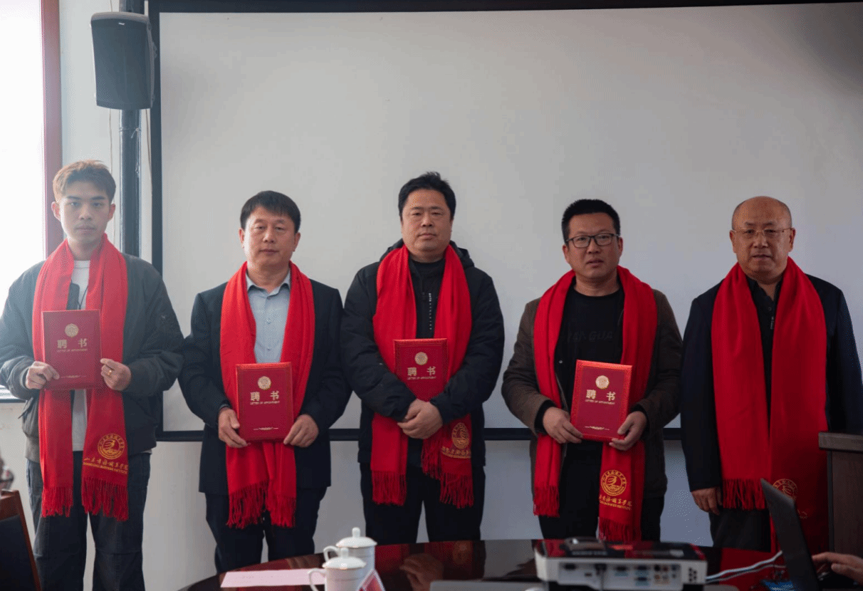 陶传蔚向会长、副会长、秘书长、副秘书长颁发聘书。