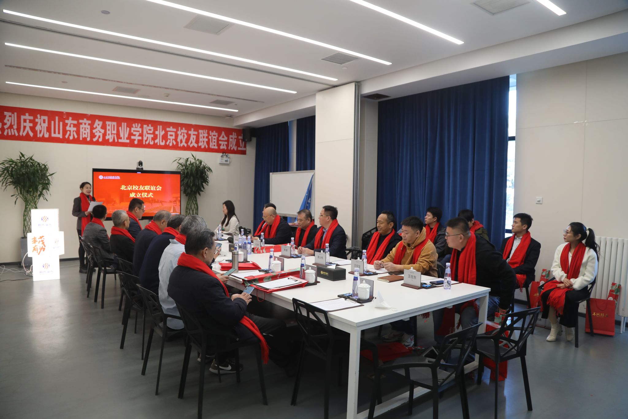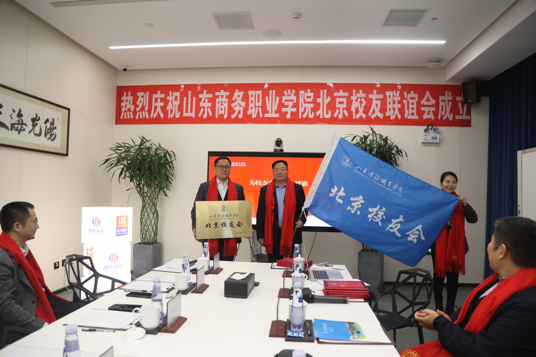 本站讯 1月18日,我校北京校友会成立仪式在北京阳光海天停车产业集团有限公司举行。学校党委副书记张越致辞并为北京校友会授牌、授旗,学校原党委委员、副校长陶传蔚向北京校友会首届理事会成员颁发聘书,校友工作专班成员、北京地区校友参加了本次仪式。08级会计专业校友李欣主持仪式。