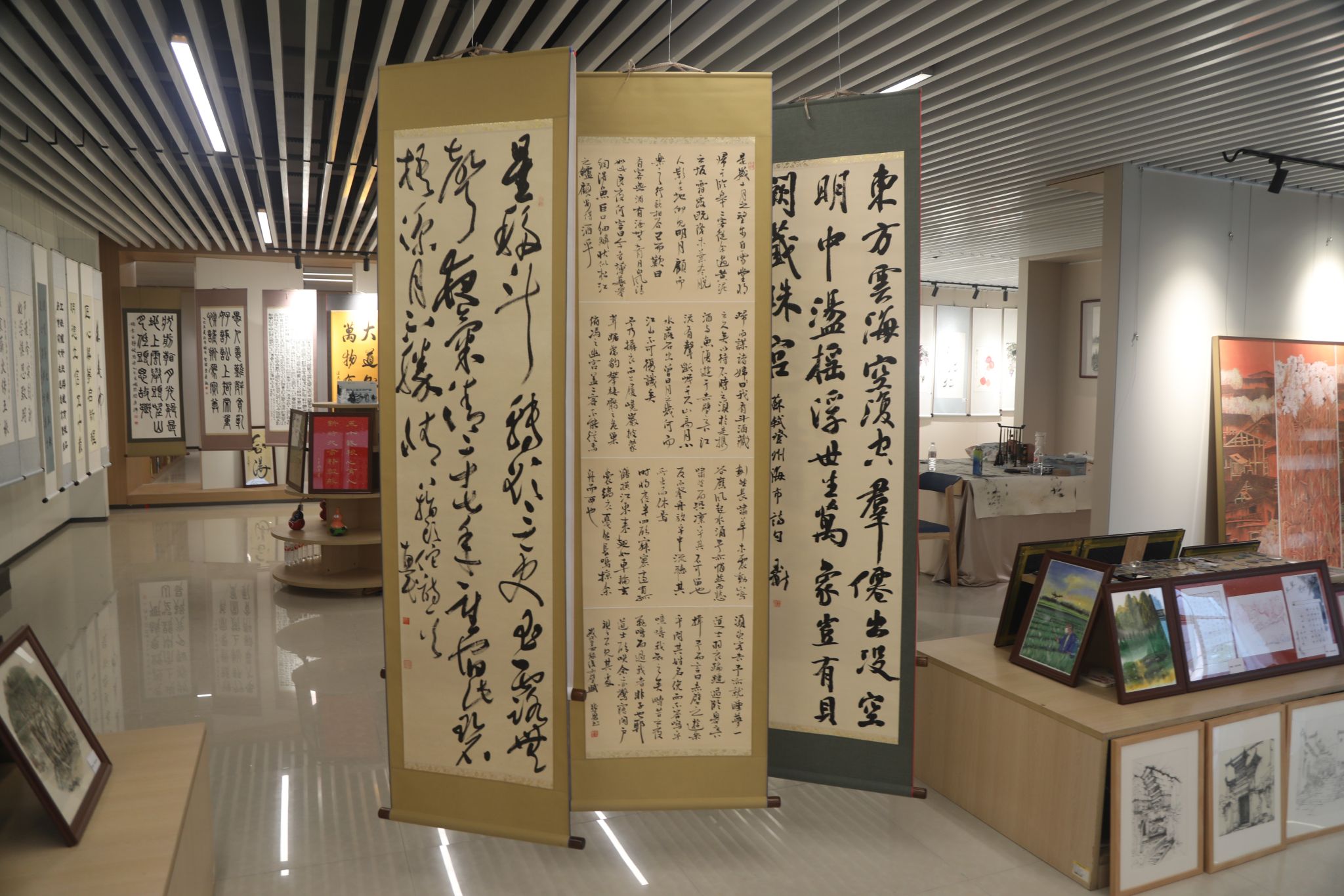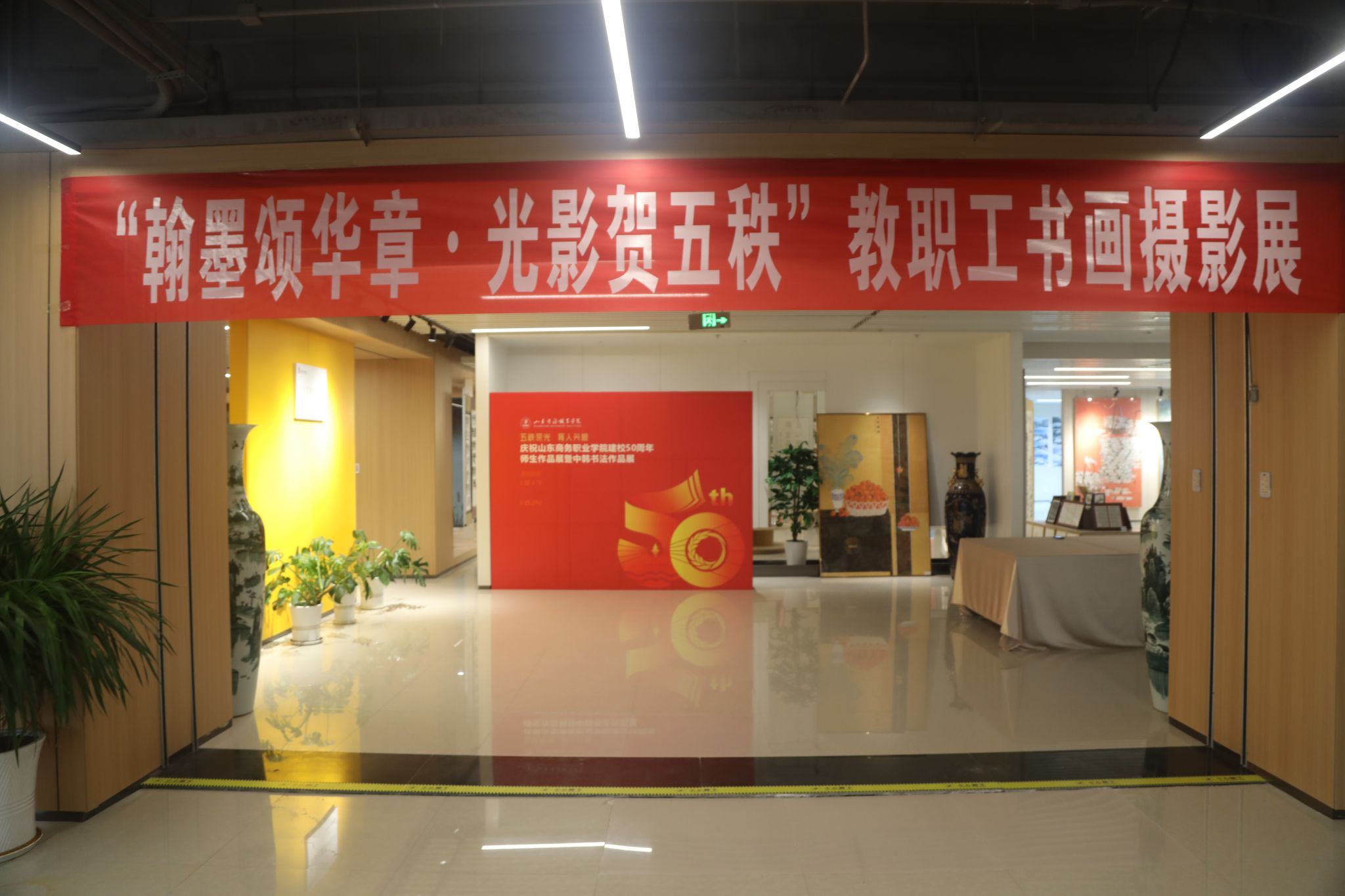 本站讯 为庆祝学校建校50周年,充分展现学校办学成果与师生校友爱校荣校情怀,由学校工会牵头,书法、绘画协会、摄影协会主办,宣传统战部、党委(学校)办公室、图书馆、团委协办,全校各部门、院部,烟台市高新区大力支持的“庆祝山东商务职业学院建校50周年师生作品展暨中韩书法作品展”,于 10月17日至24日在学校图书馆二楼展厅校园美术馆隆重举行。