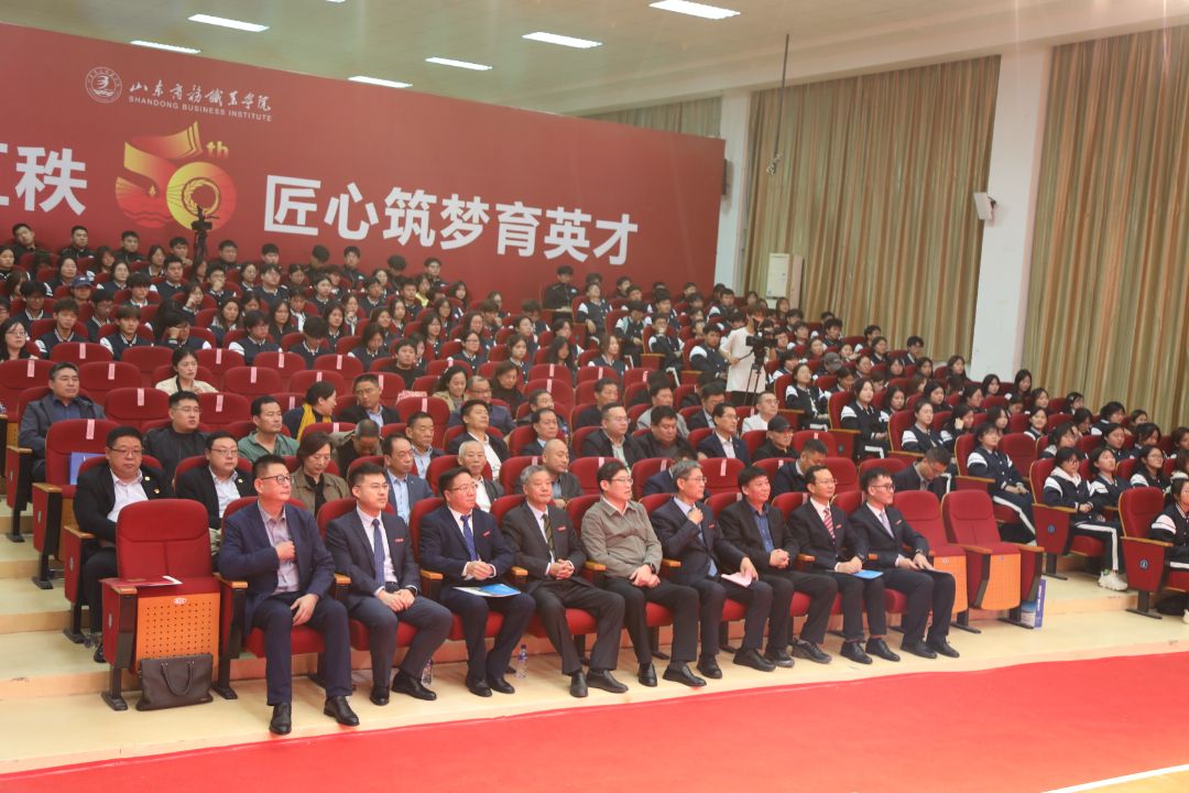 本站讯 10月17日下午,我校庆祝建校50周年捐赠仪式在音乐厅隆重举行。山东省粮食和物资储备局党组成员、副局长吕明出席捐赠仪式。学校党委书记孙云茂,党委副书记、校长王发明等领导班子成员参加仪式。