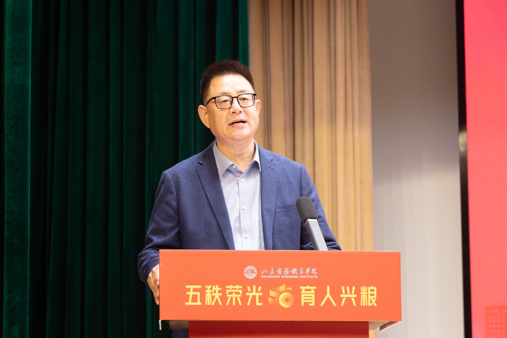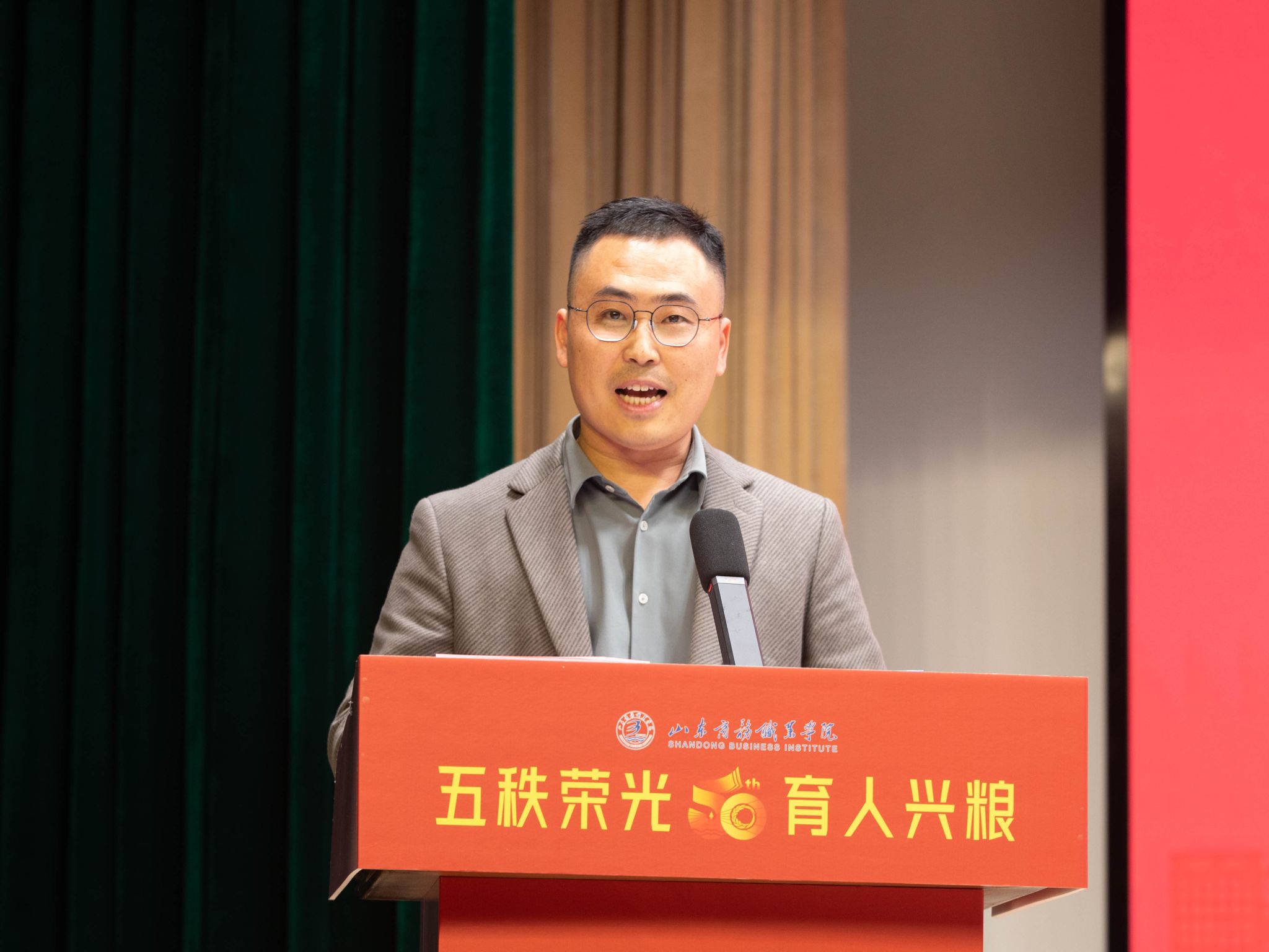 滨州中裕食品有限公司董事长宋民松作为校友企业代表发言。他介绍了企业在校企合作中参与人才培养的具体实践,并表示将继续发挥纽带作用,进一步深化与母校在产学研平台共建、人才资源共享、社会责任共担等领域的合作,助力学校培养更多服务区域经济发展的高素质技术技能人才。