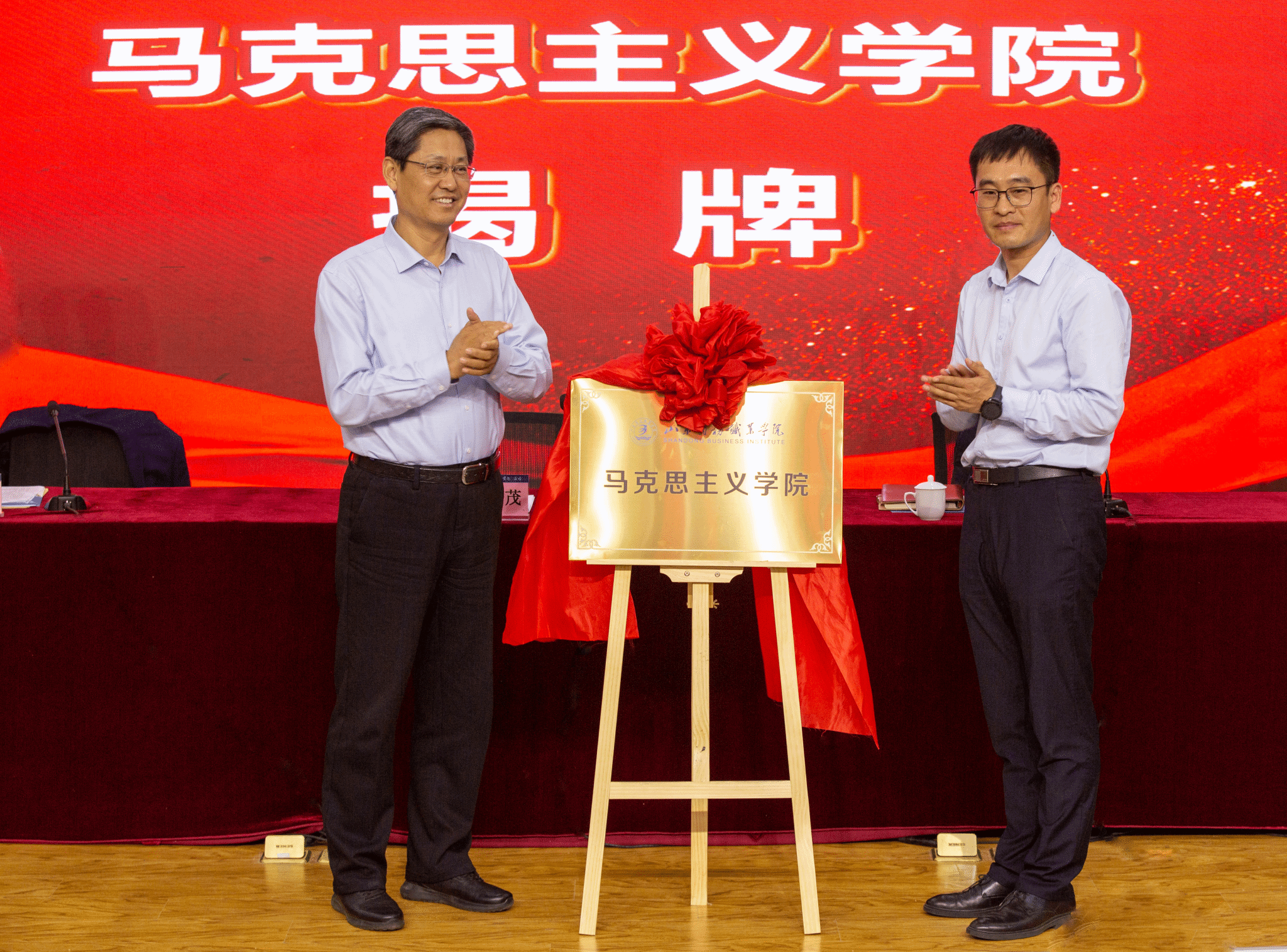 2023年5月30日,马克思主义学院和大学生心理健康教育中心在党性教育基地正式揭牌。为全面贯彻党的教育方针,促进大学生健康成长,根据《山东省高校心理健康工作网络建设指南的通知》(鲁教思字〔2022〕1号)等文件要求,经学校党委研究,决定成立大学生心理健康教育中心。大学生心理健康教育中心隶属学生工作处,按照科级单位管理。原思想政治理论课教学部心理教研室整体划入大学生心理健康教育中心。经学校党委研究,决定撤销思想政治理论课教学部,成立马克思主义学院,为副处级教学机构。