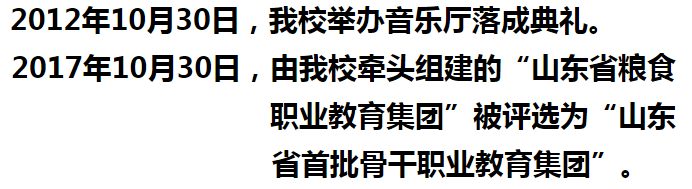 2017年10月30日,山东省教育厅发布《关于公布山东省骨干职业教育集团名单的通知》(鲁教职字〔2017〕41号),由我校牵头组建的“山东省粮食职业教育集团”被山东省教育厅评选为“山东省首批骨干职业教育集团”,位列第四位。